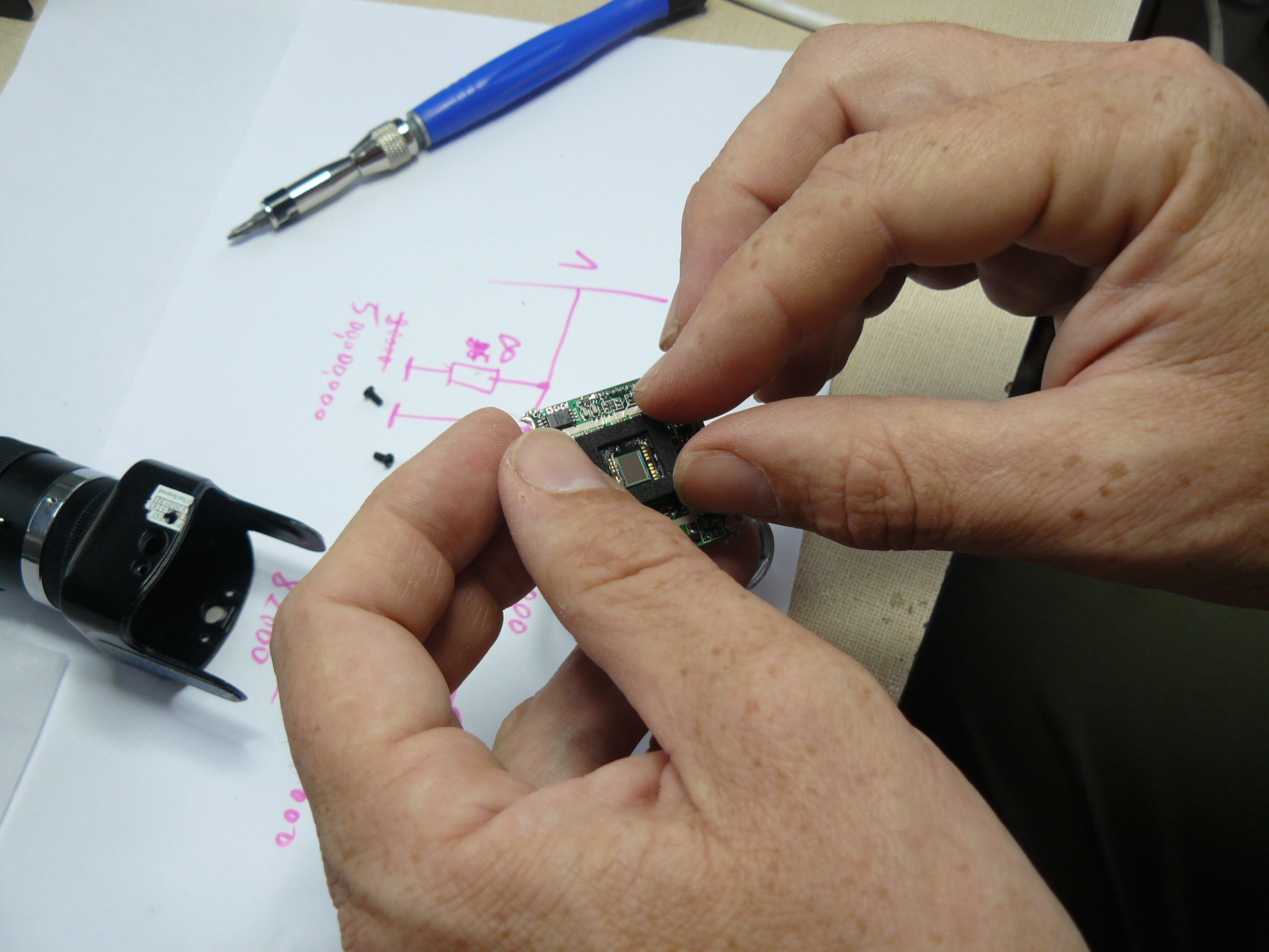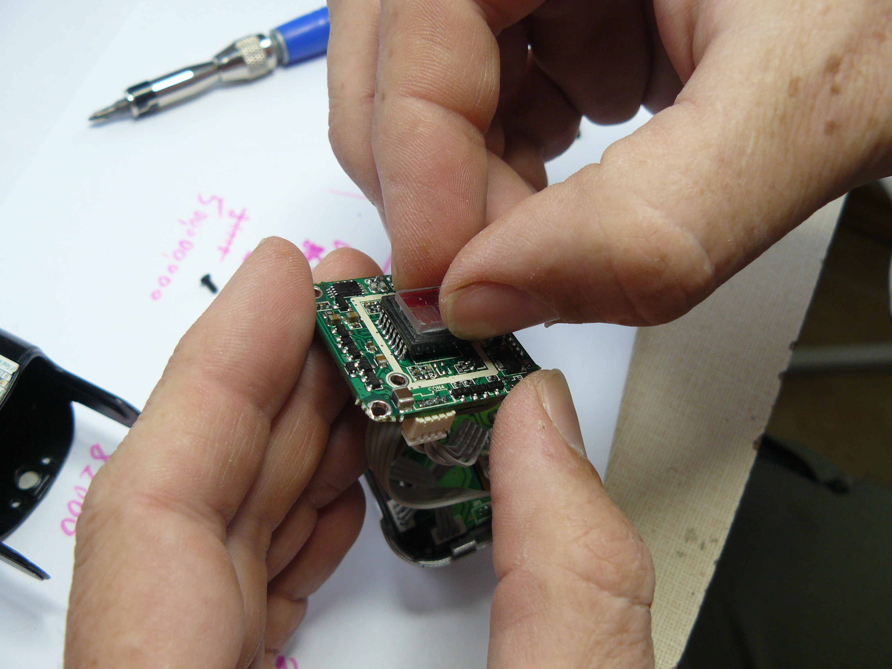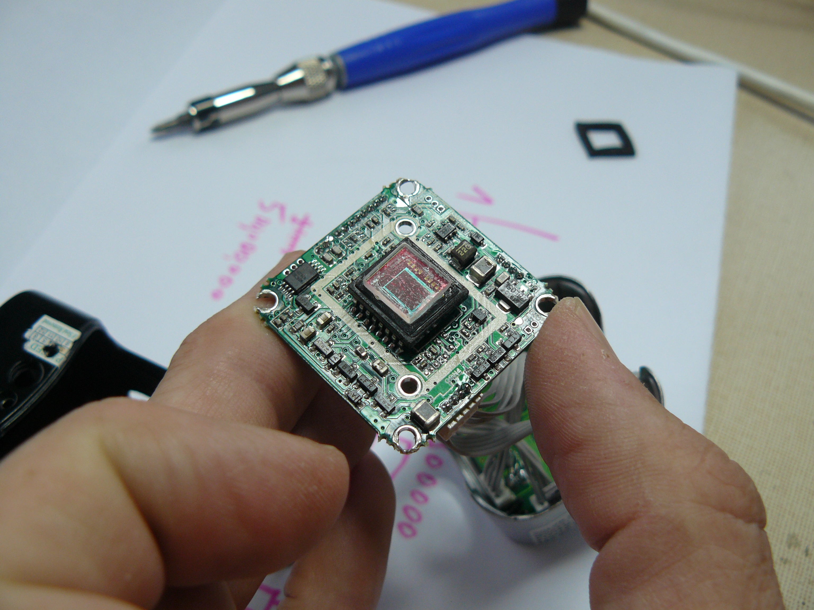 Na zadní straně kamery je věčně svítící červená LED, která by ve tmě mohla způsoboval odlesky od předního skla krytu. Je proto lepší jí odpojit ihned během vyndavání IR filtru.