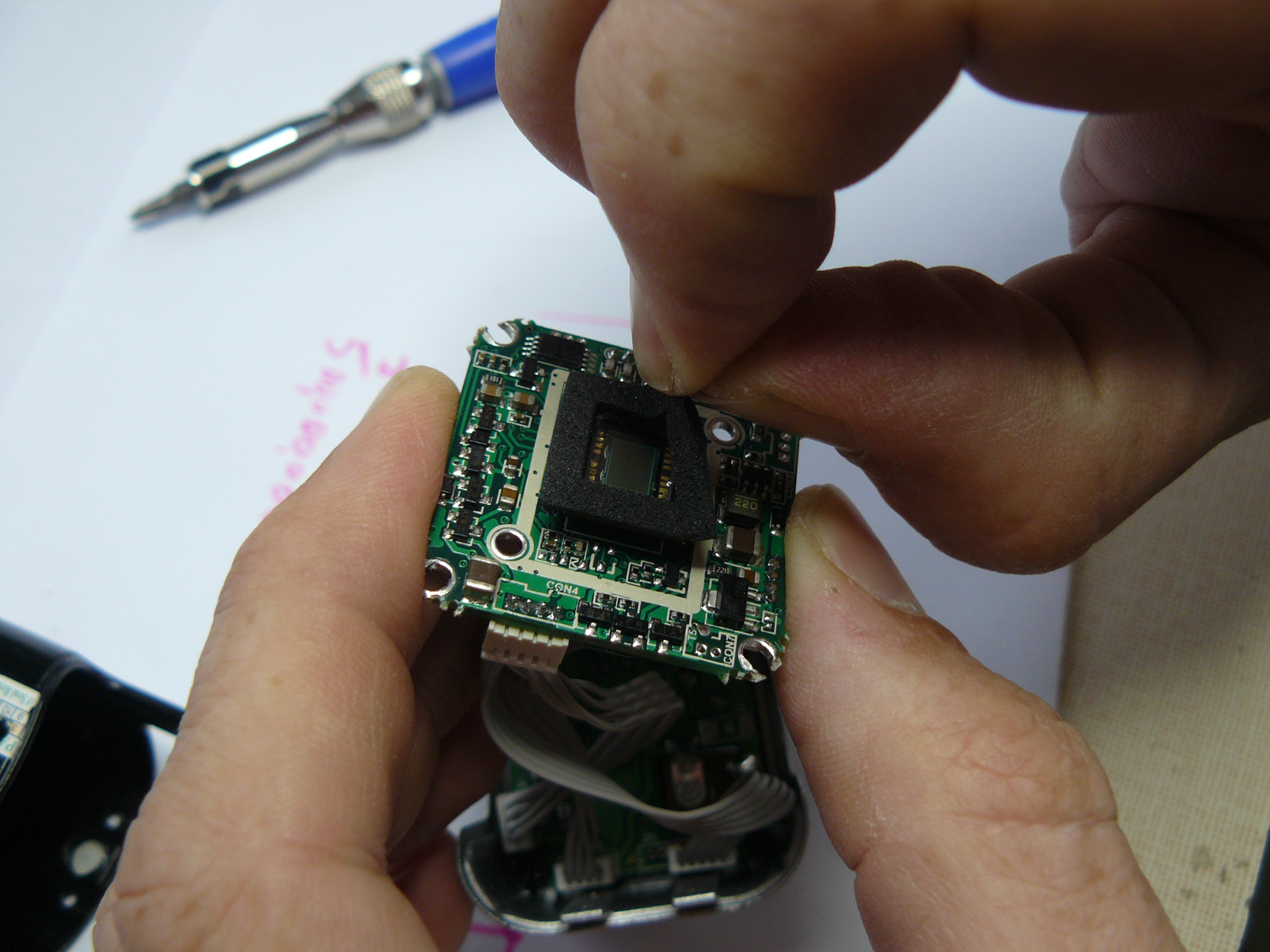 Na zadní straně kamery je věčně svítící červená LED, která by ve tmě mohla způsoboval odlesky od předního skla krytu. Je proto lepší jí odpojit ihned během vyndavání IR filtru.