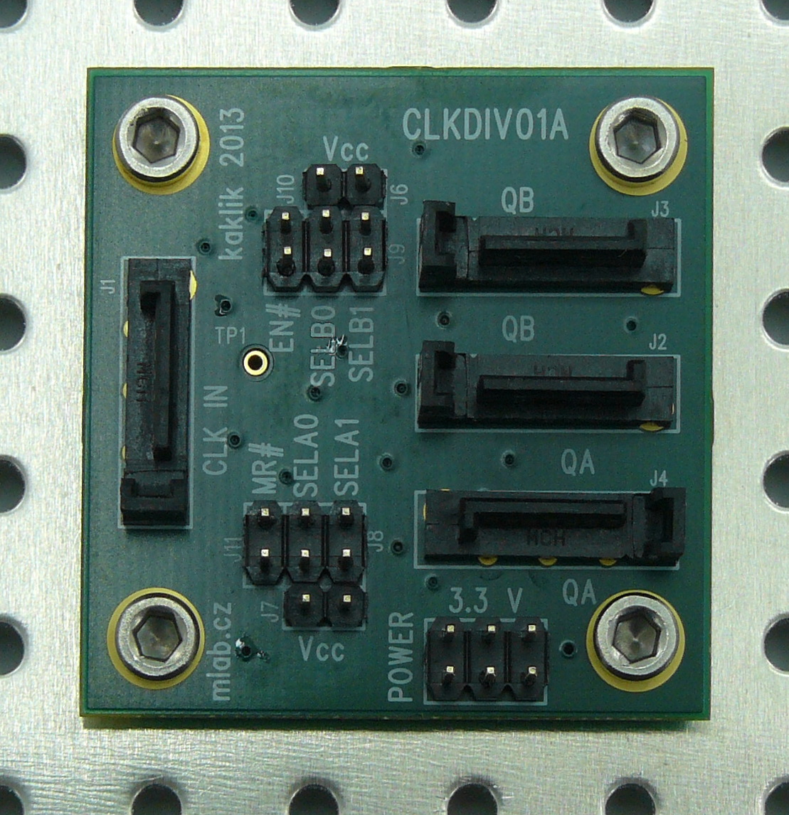 Multiple division ratios can be selected by jumpers. Possible division ratios are: (÷1, ÷2, ÷4, ÷8) or (÷2, ÷4, ÷8, ÷16) every output is synchronous each other. The common enable (EN) is synchronous so that the internal dividers will only be enabled/disabled when the internal clock is already in the LOW state.