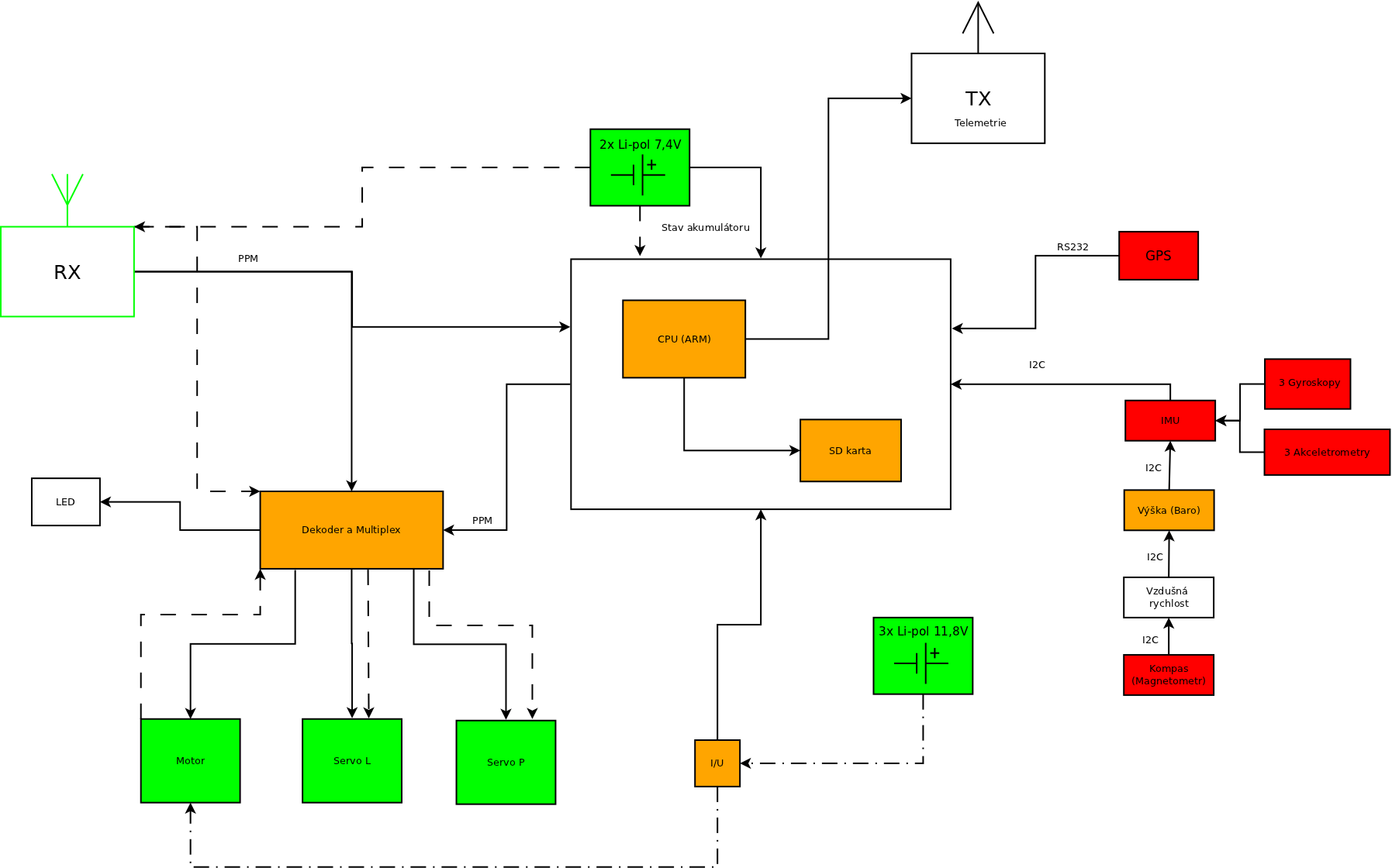 Main UAV control board is based on STM32F10xRxT01A ARM microcontroller module populated with STM32F103 microcontroler.